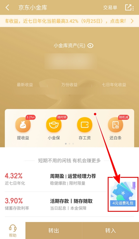 京东金融APP-小金库-右下角推送入口(不一样的可以尝试重进小金库)
